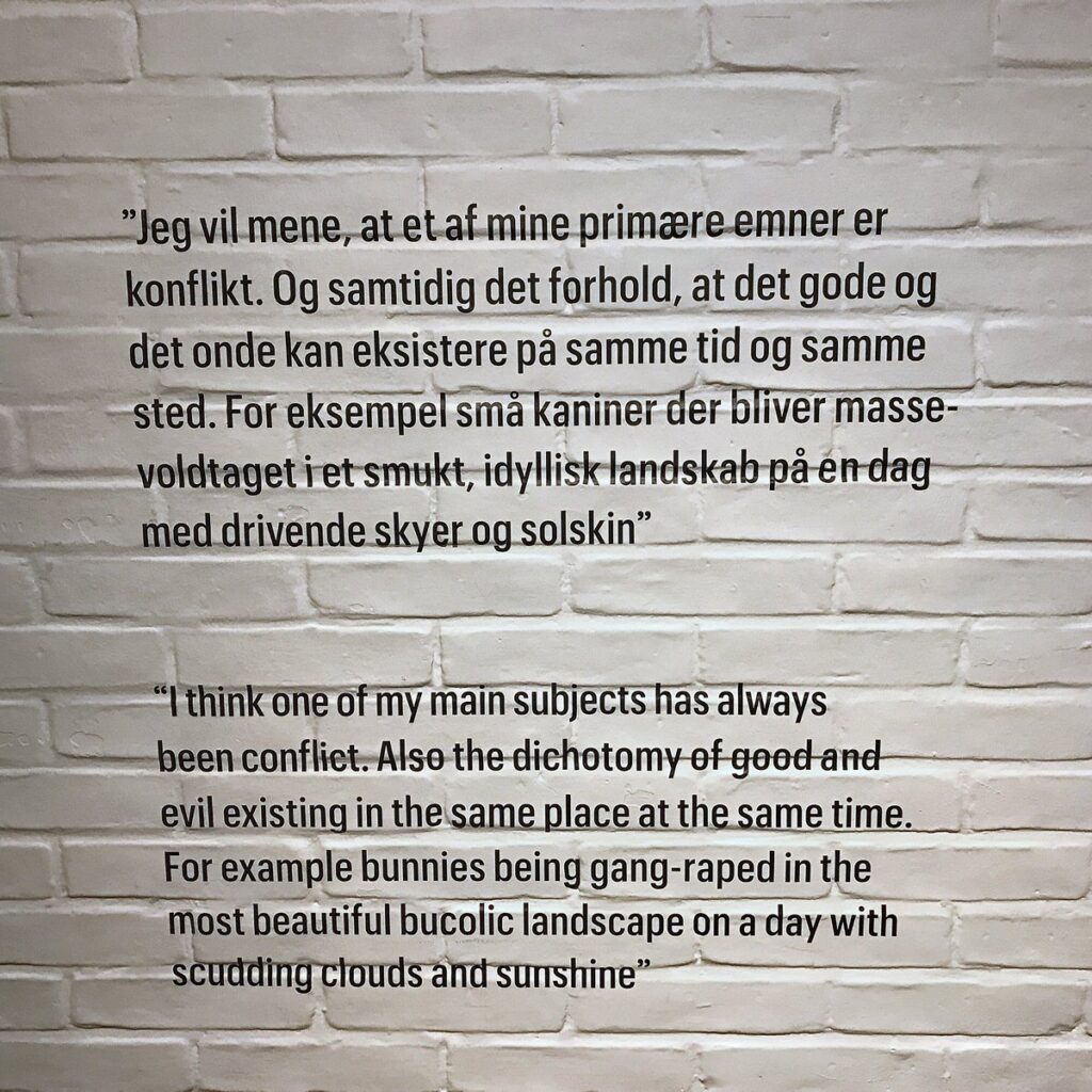 “For eksempel små kaniner der bliver massevoldtaget i et smukt, idyllisk landskab på en dag med drivende skyer og solskin”