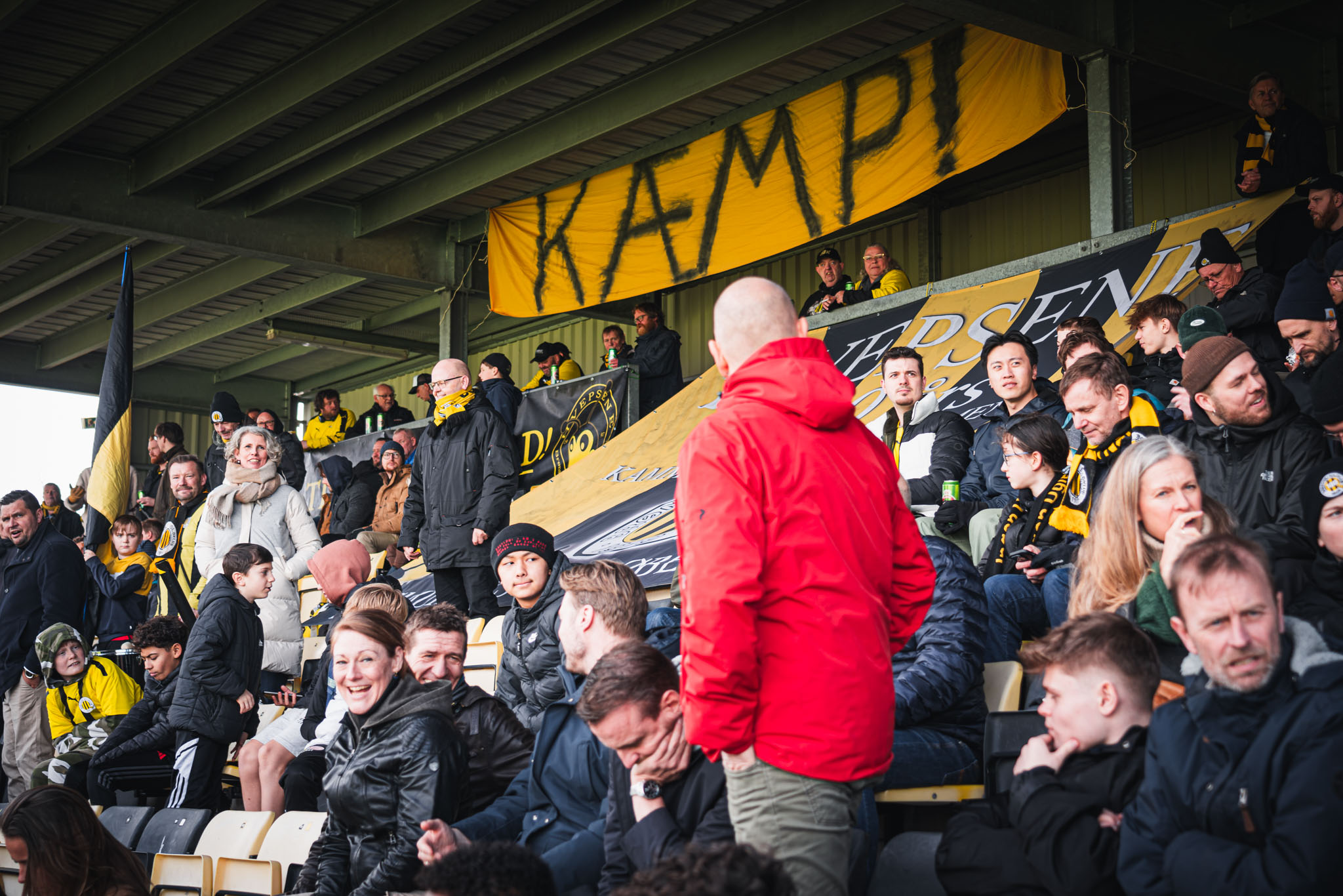 Til sæsonens første hjemmekamp kom der 902 tilskuere. 902 ! Der er sgu vildt. Vi taler om serie bold. Vi var som familie mødt fem mennesker op men 902 er jo fantastisk. Mange iført trøjer, huer og halstørklæder og der bliver sunget fra 1. fløjt til det sidste. Det er superfedt at opleve den lokale opbakning. Unge og gamle til fodbold. Øl og stadionpølse. Sang og jubel.