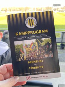 Vi købte billet og fik udleveret et trykt kampprogram. Trykt – ikke en QR kode med mulighed for at downloade selv. Næh, et rigtigt trykt kampprogram. Som de skrev til mig på Twitter: “Selvfølgelig. Bare fordi vi er i DS, må der godt være stil over det!”