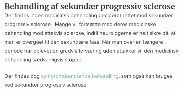 For nylig blev jeg kontaktet af en studerende, som skulle lave en eksamenopgave om, hvad det betyder, at du med sekundær sclerose ikke har nogle deciderede behandlingsmuligheder: