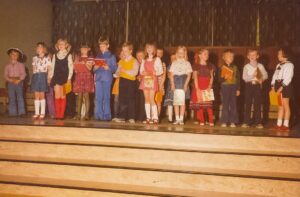 På ISJ skulle vi børn hvert år opføre et teaterstykke – ofte løjer og korte sekvenser – og jeg huske et år, hvor jeg skulle spille konge. Uha, jeg var nervøs men måske mere fordi jeg skulle holde Juliane i hånden (Juliane var en af de populære piger). Det virker jo helt på månen idag men i 70ér var det grænseoverskridende for mig.