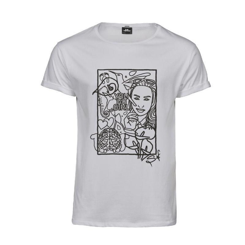 Til kampagnen har Scleroseforeningens ambassadør Szhirley i samarbejde med grafiker Wendy designet dette års You Go Girl T-shirt.